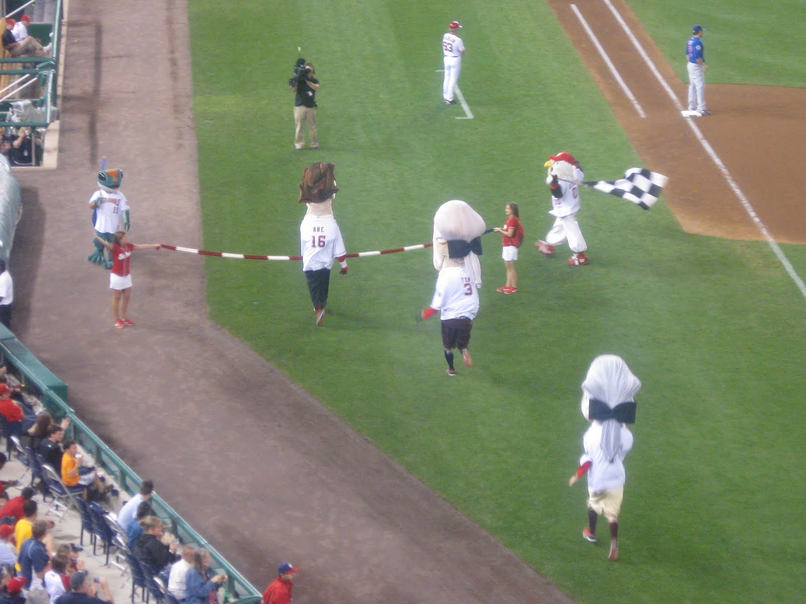 And finally, Abe won the 4th inning Presidents Race again, beating Tom to the finish line.